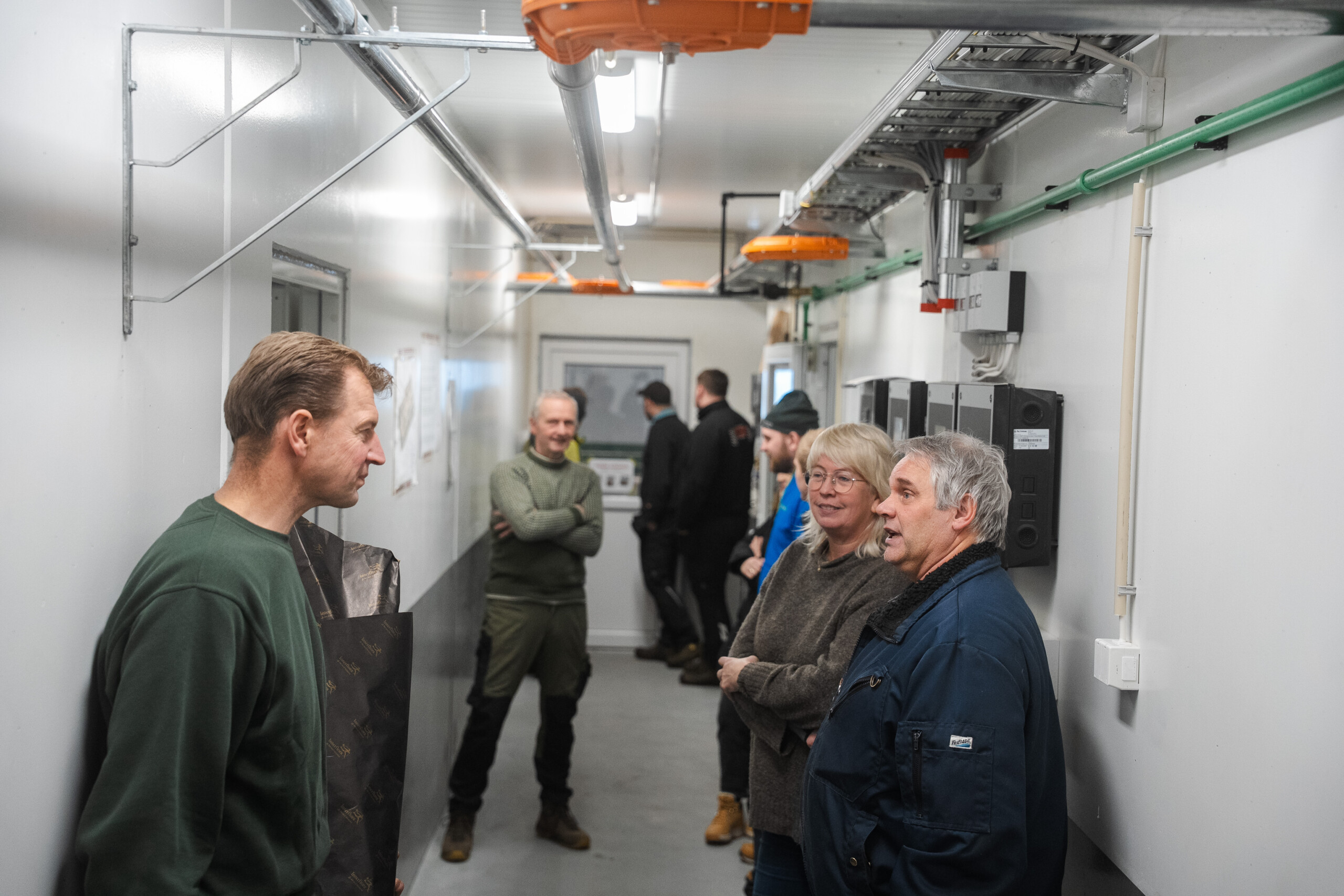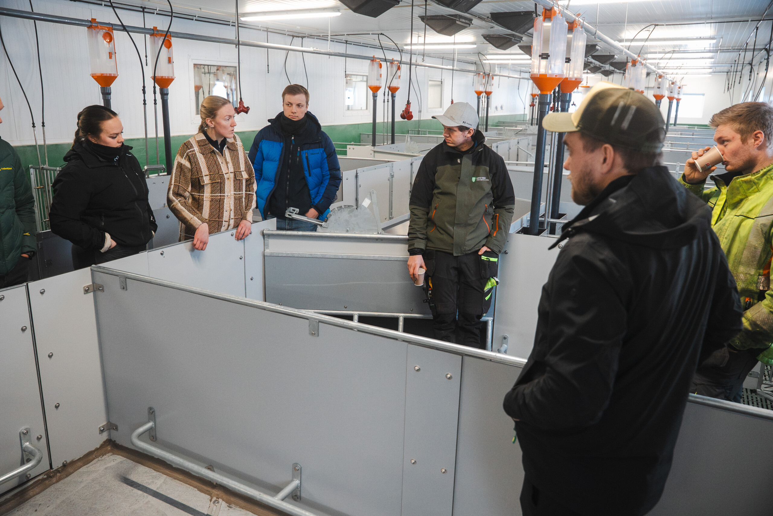 Under det åpne fjøset på Lena var det bitende kaldt ute, men inne i det nye driftsbygget var atmosfæren lun og god. Dette skyldes bevisste valg i bygningskroppen. Himlingen er levert med 120 mm sandwichelementer, som i kombinasjon med isolerte yttervegger sørger for et bygg som holder på varmen og gir dyra de beste forutsetningene for trivsel.