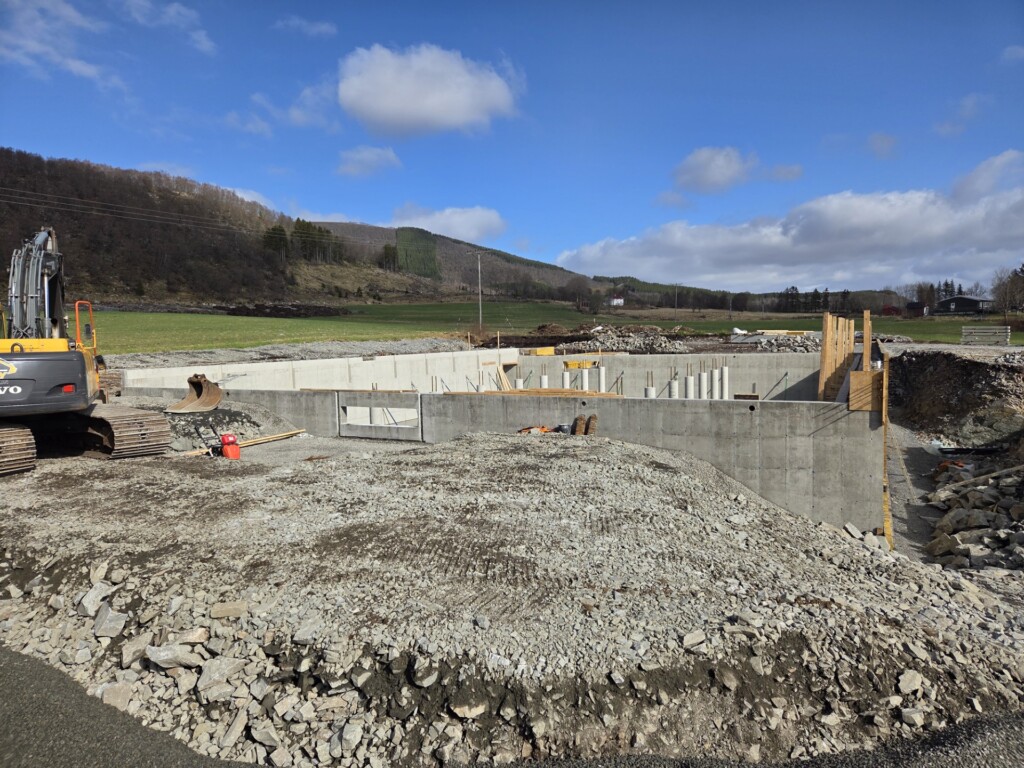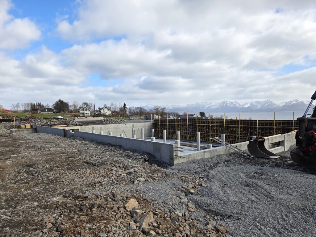 Arbeidet med fundamenteringen startet opp i februar. Å drive med betongarbeid i Nordland på denne tiden av året krever spesialkompetanse; for å sikre optimal herding og kvalitet i betongen har hele gulvarealet blitt isolert gjennom vintermånedene for å eliminere risikoen for frostproblemer.