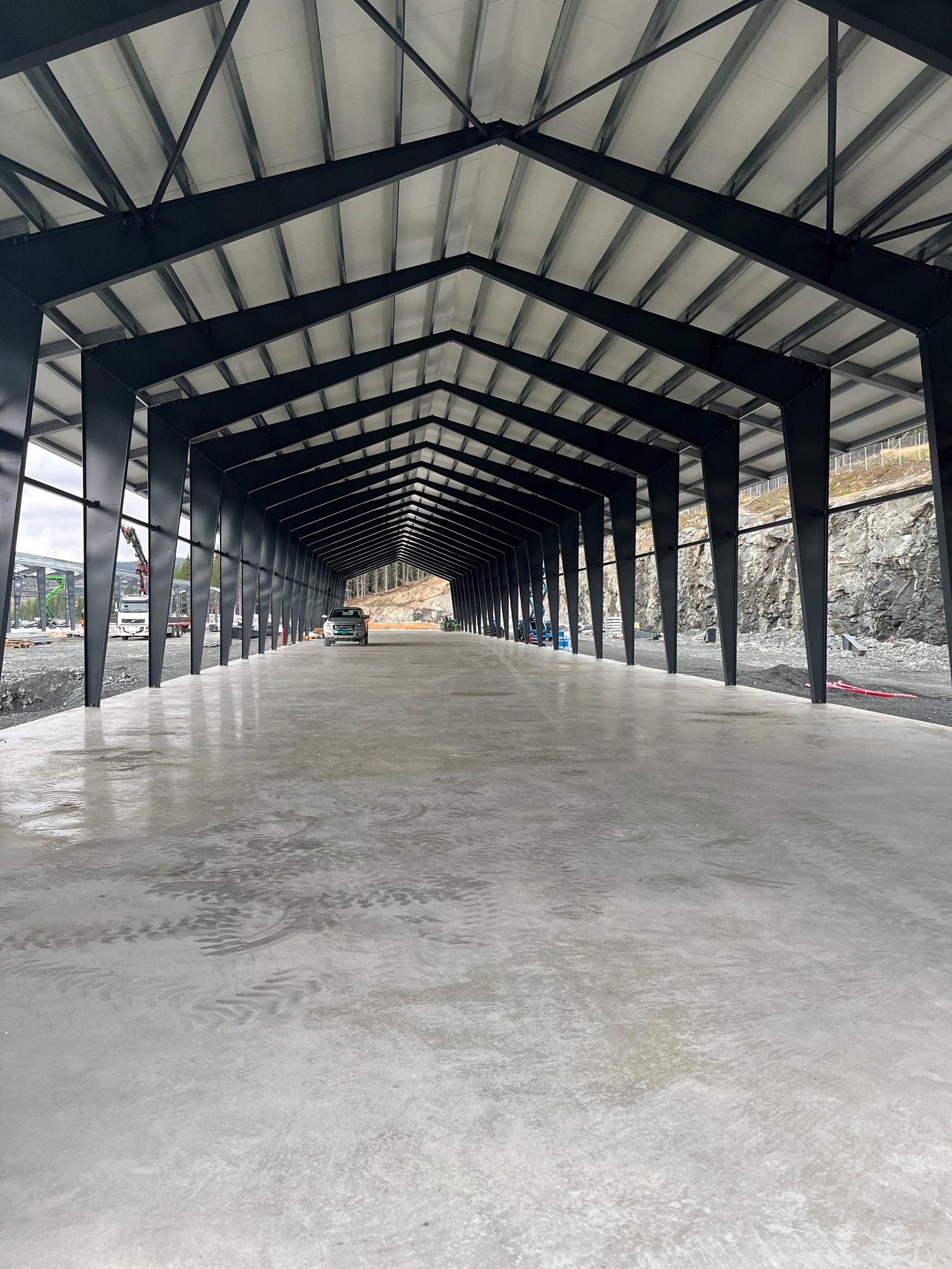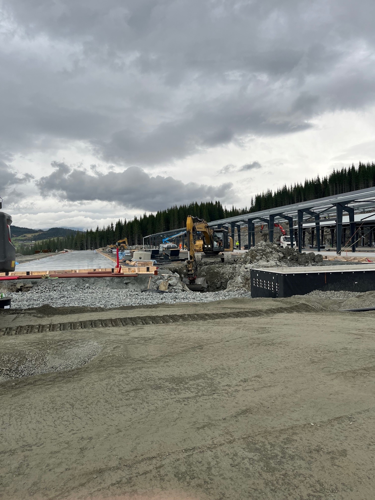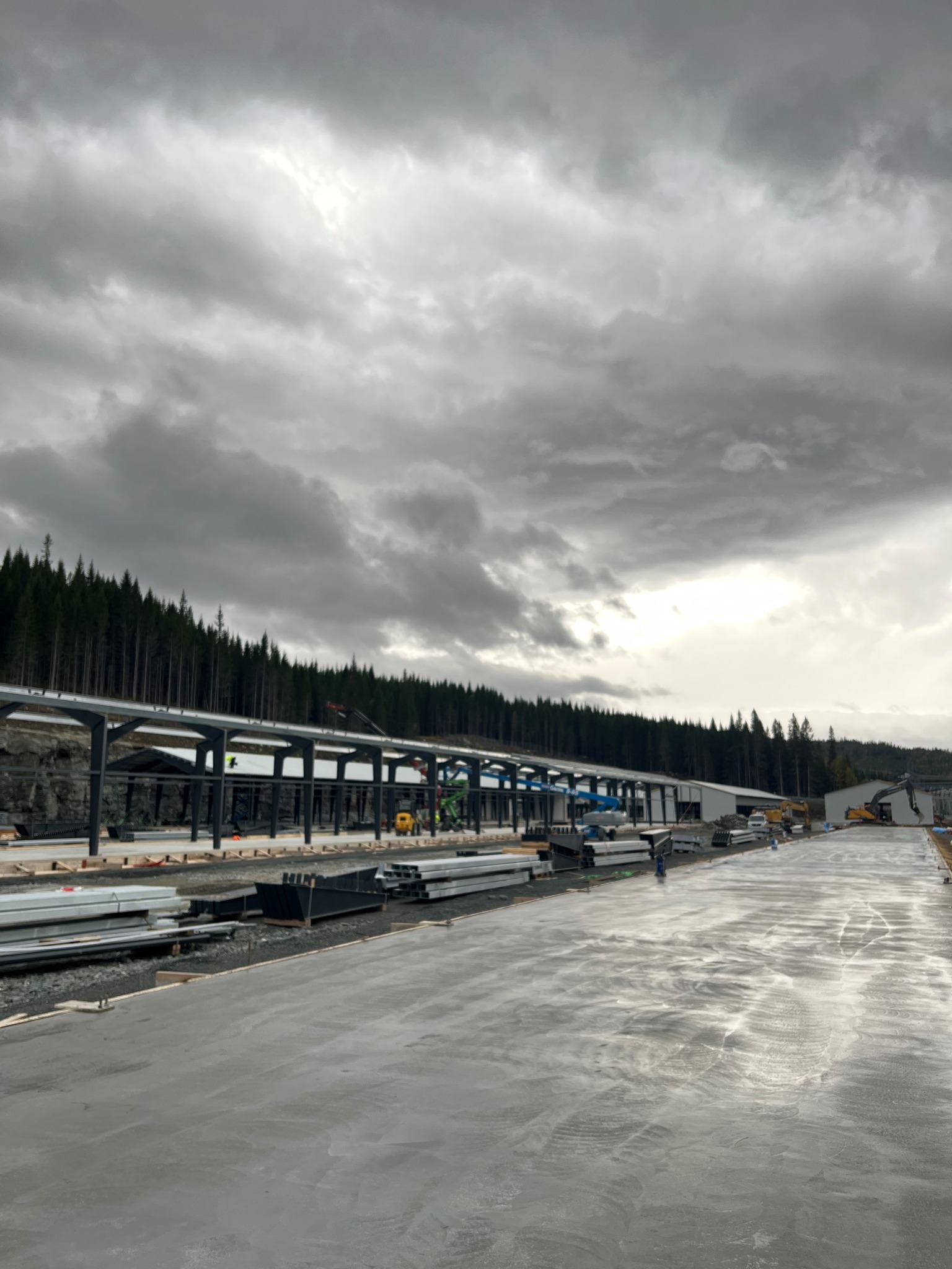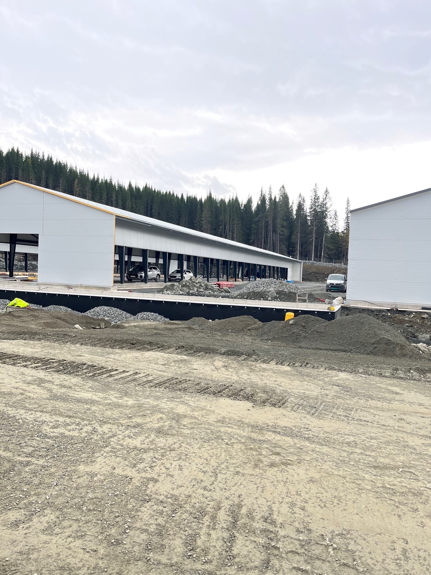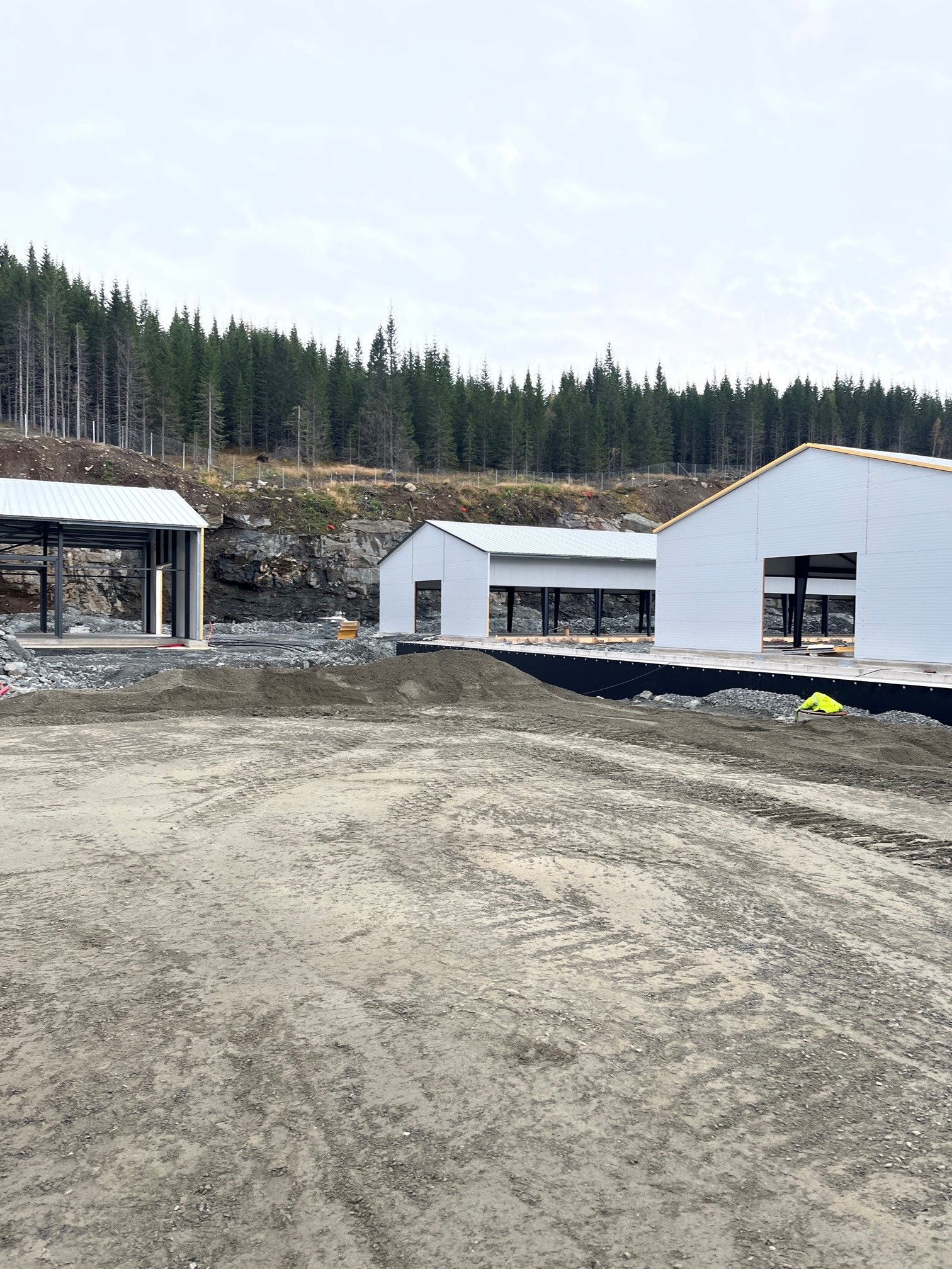 Byggeprosessen styres av Steinar Myhre AS. Alt av betong er produsert av vår egen betongfabrikk, Hårr Snåsa Betong. Vi startet byggeprosessen 3. juli og alle bygg skal være tette til jul. Så her går det unna.